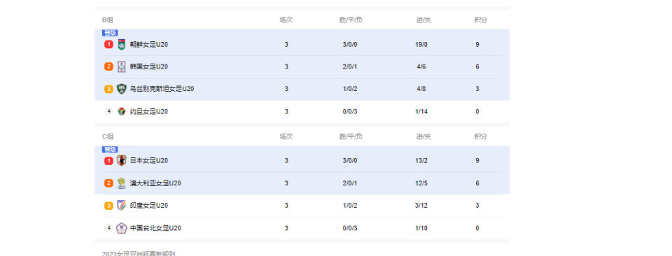 同组第二、第三、第四分别是泰国队(晋级)、越南U20女足(成绩最好的小组第三之一,晋级八强),孟加拉国女足(出局)。